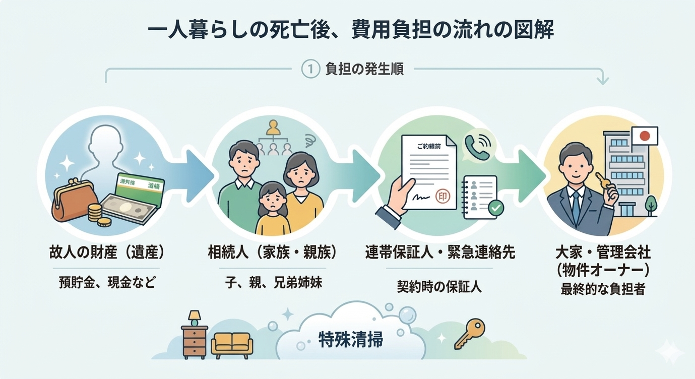 一人暮らしの死亡後、費用は誰が負担するのか?