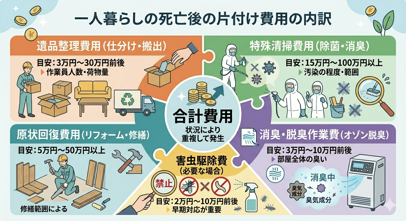 一人暮らしの死亡後|片付け費用の内訳と相場