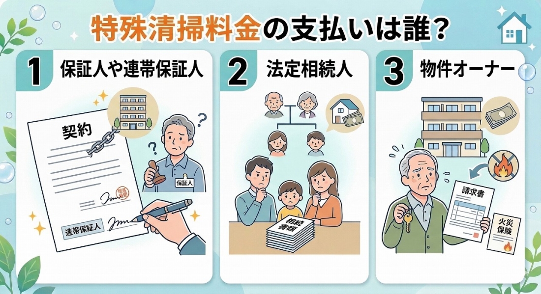 連帯保証人の責任範囲は契約内容によって異なりますが、特殊清掃費用や原状回復費用の請求を受ける可能性があることを事前に把握しておくことが大切です。